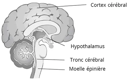 Nous l’avons déjà évoqué, c’est Henri Laborit qui a en France développé ou vulgarisé ces concepts, nous montrant par exemple que si notre cœur se met soudain à battre la chamade et notre respiration à s’emballer, c’est pour préparer notre corps à courir pour échapper au pire. Car dans ce monde-là (sauvage et animal), celui dans lequel ces mécanismes primitifs de survie ont été sélectionnés selon les lois de l’évolution des espèces, il suffit ordinairement d’une fois, d’une seule erreur, pour mourir ! Si la vieille partie du cerveau chargée de nous protéger (l’hypothalamus, notamment, situé dans les territoires dits reptiliens, juste au-dessus du tronc cérébral et de la moelle épinière, à la « racine » du cerveau en quelque sorte) détecte une situation de danger ou l’interprète comme telle, elle enclenche tout un processus instinctif, c’est-à-dire génétiquement programmé, de survie : le stress. Le stress animal défensif provient d’un niveau cérébral qui fonctionne de manière essentiellement inconsciente et instinctive, ne nécessitant aucun apprentissage (et n’en permettant aucun, ce qui explique le caractère peu contrôlable, du moins directement, des vécus et impulsions qui en proviennent).