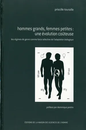 Imaginons une société dans laquelle les hommes seraient en majorité plus petits que les femmes (ou les femmes plus grandes que les hommes, selon le point de vue). Impossible, pensons-nous? Parce que tout ce que fait la Nature est « bien fait »? Et si, en la matière, la Nature était loin de produire des adaptations positives? Et si, en plus, cette différenciation morphologique n'était pas l'œuvre de la Nature? Si elle était plutôt l'indice de sélections non naturelles constituées par une entreprise de catégorisation sociale millénaire: le genre? L'auteur discute dans cet ouvrage des explications évolutives du dimorphisme sexuel de taille corporelle entre mâles et femelles dans le monde vivant. Elle attire l'attention sur l'absence d'un modèle robuste qui rende compte de l'écart sexué de la stature dans l'espèce humaine; en confrontant des données et des modèles disponibles dans des champs disciplinaires éloignés, elle fait peu à peu émerger une hypothèse inédite. Cette recherche illustre le besoin de questionnements transdisciplinaires qui se montrent seuls ici capables de renouveler les termes d'une investigation remarquablement gelée depuis le xixe siècle.