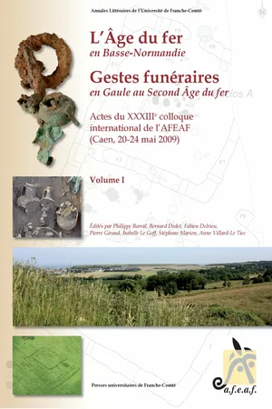 Cet ouvrage est la publication des actes du 33e colloque international de l'AFEAF, qui s'est tenu à Caen, du 20 au 24 mai 2009. De même que le colloque, il comprend deux parties. La première, qui contient dix-sept contributions, traite de l'actualité des recherches sur l'Âge du fer en Basse-Normandie, une région qui a connu un renouvellement important de la documentation permettant d'appréhender les dynamiques d'occupation et les formes d'organisation territoriale durant la Protohistoire. Plusieurs bilans synthétiques concernant l'habitat rural, les sites fortifiés et la culture matérielle, sont, entre autres, proposés ici. La seconde partie de l'ouvrage traite du thème de la mort et des pratiques funéraires durant la période Ve-Ier siècles avant J.-C. ; elle contient vingt-deux contributions. Ce sujet a été abordé en privilégiant quelques axes de réflexion, de façon à faciliter les comparaisons entre régions. À travers des bilans synthétiques, le thème spécialisé du colloque est traité à l'échelle de la Gaule, avec les éclairages de plusieurs régions de l'Europe celtique.