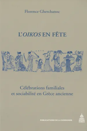 Comment définir la famille en Grèce ancienne ? Qui invite- t-on chez soi ? Suivant quelles modalités ? Pourquoi ? Longtemps, les historiens ont exclu la famille du champ d'étude de la sociabilité, considérant qu'elle relevait de la sphère privée. L'analyse de célébrations ritualisées et normées, le plus souvent festives (mariage, naissance, décès ; sacrifices, banquets, processions, danses, chants), entre parents, amis et voisins, autrement dit entre familiers (oikeioi), ainsi que des discours qui y font référence (tragédies, comédies, plaidoyers civils, discours philosophiques, lois...), conduit cependant à éclairer des formes de sociabilité plus ou moins formelle propres à appréhender la composition de la famille grecque dans l'Antiquité, son ouverture, ses limites et à définir ses normes, sa cohésion et son identité par des comportements spécifiques et les liens créés. Elle permet également de situer les individus dans l'oikos en fonction de leur statut, de leur âge et de leur sexe. Les célébrations sont organisées et transformées en spectacle, les relations forgées sont théâtralisées. La famille est ainsi comprise comme un nœud de solidarités organiques et imbriquées, un espace de visibilité sociale aux frontières perméables et floues, plutôt que comme une structure juridique figée et un lieu d'expression du privé à l'intérieur de la cité grecque. Le livre met en lumière les liens qui se nouent et perdurent à l'intérieur de la famille et la manière dont ces relations tissées dans un cadre domestique façonnent des interactions plus larges de la famille à la cité, principalement aux époques archaïque et classique, dans le monde grec. Il pose en définitive la difficile question de la nature de la cité.
