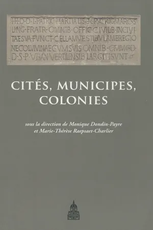 Jusqu'en 1999, la municipalisation dans les Gaules et les Germanies, c'est-à-dire la constitution des cités, leurs statuts et les modalités de leur administration, n'avait jamais encore été abordée sous un angle global. Les études envisageaient la question soit dans l'optique de l'urbanisation, soit dans un cadre géographique limité. Nous nous sommes donc efforcés d'établir des dossiers documentaires complets et de les discuter de façon approfondie. En dépit des nombreuses publications concernant ces provinces occidentales publiées entretemps, le livre n'a pas été remplacé, et il est apparu qu'une réédition était souhaitable. Les contributions, conformes à celles de la première livraison, concernent donc l'évolution de la Narbonnaise (M. Christol), les magistratures des Trois Gaules (M. Dondin-Payre), la colonie de Lyon (F. Bérard), la problématique de la future Normandie (E. Deniaux) d'une part; pour les Germanies, les colonies suisses (R. Frei-Stolba et coll.), rhénanes (H. Galsterer), et la totalité des autres cités (M. Raepsaet-Charlier) d'autre part; enfin, trois analyses sont consacrées aux vétérans en Belgique et Germanie inférieure (S. Demougin), et aux aspects religieux de la municipalisation (J. Scheid, avec une attention spéciale portée aux curies, W. Van Andringa, les sacerdoces publics).