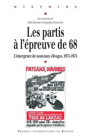 Issu du troisième colloque tenu à Rennes (février 2010) sur les partis politiques français depuis la Libération, cet ouvrage s'intéresse aux conséquences de Mai 68 sur le système partisan français dans la séquence chronologique qui va du printemps 1971 à l'automne 1974. Comment gaullistes et communistes, les deux grandes forces politiques des Trente Glorieuses, ont-ils été déconcertés par les « événements », débordés et finalement marginalisés ? Comment, à l'inverse, ceux qui n'étaient jusque-là que « la droite non gaulliste » et « la gauche non communiste », giscardiens et socialistes, ont-ils été capables, avec quelque retard mais une grande efficacité, de « récupérer » le puissant et proliférant mouvement social du moment 68 ? Comment les premiers ont-ils su enrayer les aspects les plus révolutionnaires quant à l'organisation de la société pour imposer durablement le néolibéralisme en France ? Comment les seconds ont-ils su capter à leur profit les aspirations au « changement » pour retrouver le chemin du pouvoir après la longue période de délitement qu'ils avaient connue ? Telles sont les grandes questions auquel l'ouvrage essaye de répondre, en prenant pleinement en compte les évolutions de la société dans les années 1970 pour mieux comprendre les liens complexes mais consubstantiels entre le social et le politique.