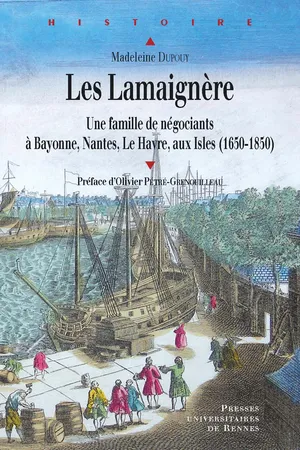 Les « grandes » familles ont eu leur généalogiste voire leur historiographe, mais ce n'est pas le cas des familles « moyennes » qui sont les plus nombreuses. À partir de l'histoire d'une famille du négoce bayonnais, les Lamaignère, Madeleine Dupouy a recréé sur deux siècles l'itinéraire collectif d'une famille et de ses alliés, les Labarthe, les Drouilhet, les Despinose et les Drouillard. Elle a brossé à grands traits leur évolution, leur cadre et leur mode de vie ainsi que les liens qui les unissaient. Au sein de ce groupe, Madeleine Dupouy a souligné l'importance des femmes, garantes des valeurs de la culture du négoce et aptes à diriger la maison de commerce en l'absence du chef de famille. Au sein de ce groupe se détache la famille Drouilhet, banquiers bayonnais tentés par la « savonnette à vilain » dont la réussite spectaculaire a pour cadre Madrid, l'une des capitales du négoce international de l'époque moderne, mais aussi Paris où ils s'intègrent à la noblesse d'extraction chevaleresque. Bayonne n'est pas le théâtre exclusif de cet ouvrage, l'auteur a suivi les migrations successives des différents protagonistes de ce récit dans les ports dans lesquels ils se sont installés : Nantes, Lisbonne, Le Havre. De même elle les a accompagnés à l'Isle de France et à Saint-Domingue qu'ils ne quittent pour les États-Unis qu'au moment de la victoire du général Dessalines. Dans la dernière partie de ce livre, l'auteur décrit les transformations qu'apportent la Révolution et l'Empire dans la vie de ses personnages et nous fait participer à la gloire du « Regulus nantais ». Enfin, elle analyse les ressorts du passage progressif du négociant d'Ancien Régime au notable du XIXe siècle impliqué dans la vie de la Cité, puis elle aborde les mutations professionnelles des derniers représentants de ces familles en dressant les portraits d'un « propriétaire-rentier éclairé » féru d'agronomie et d'un journaliste engagé dans la vie politique et passionné d'économie.