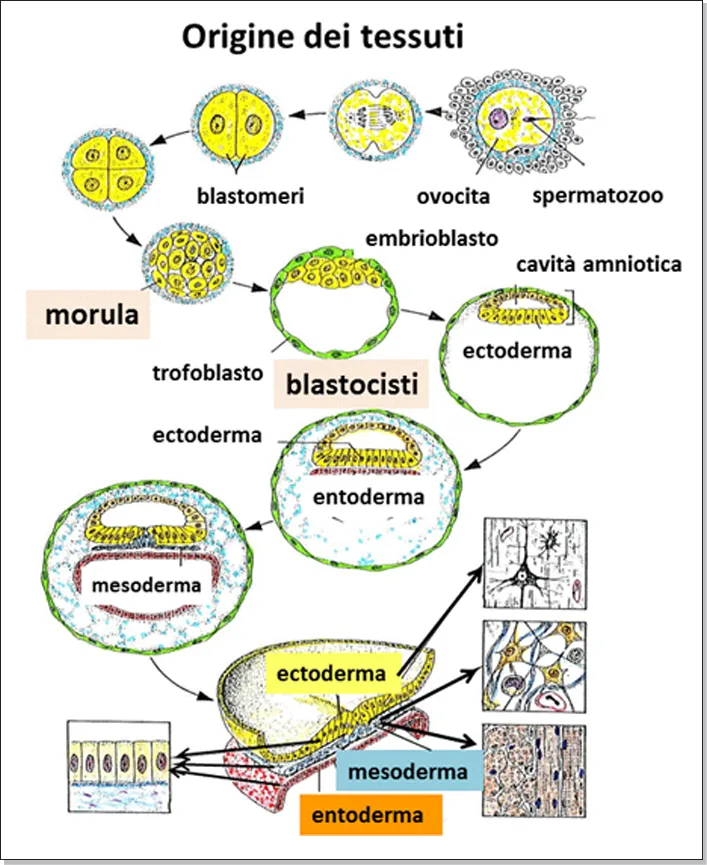 In seguito a questa premessa, al fine di rendere comprensibile il criterio embriologico applicato alla classificazione dei tessuti, insieme al morfologico e funzionale, è necessario anticipare qualche notizia sulle prime fasi della vita embrionale, fino allo stadio tridermico nel quale è riconoscibile, per la prima volta, una localizzazione distinta di gruppi cellulari dotati di diverso destino evolutivo.