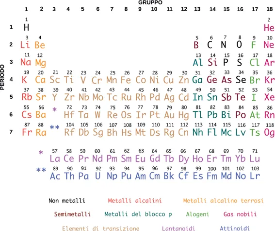 Gli atomi sono costituiti da un nucleo positivo intorno a cui ruotano gli elettroni su orbite caratterizzate da un definito livello energetico. Ogni elettrone ha massa pari a 9,109 × 10-28 g, molto piccola e trascurabile nei calcoli ponderali delle reazioni chimiche. La carica dell’elettrone è pari a 1,602 × 10-19 C. Il nucleo atomico è formato da protoni e neutroni. Per convenzione, come spiegato più avanti, ogni protone ha massa uguale a 1 e viene indicato col simbolo P o H+ perché il protone è anche il nucleo dell’atomo di idrogeno, costituito da un protone ed un elettrone; la sua carica è uguale a quella dell’elettrone, ma di segno contrario. Ogni neutrone ha massa = 1 e carica = 0. In condizioni di equilibrio ogni atomo è elettricamente neutro perché il numero degli elettroni è uguale a quello dei protoni. Con il termine ione positivo si intende un atomo od una molecola privati di uno o più elettroni, lo ione negativo è un atomo od una molecola che hanno aggiunto alla loro struttura neutra uno o più elettroni. Gli elementi si differenziano fra di loro per il diverso numero di protoni e neutroni e per il diverso arrangiamento delle orbite elettroniche. Il numero di protoni viene definito come numero atomico e determina la posizione dell’elemento nella Tavola Periodica degli elementi.