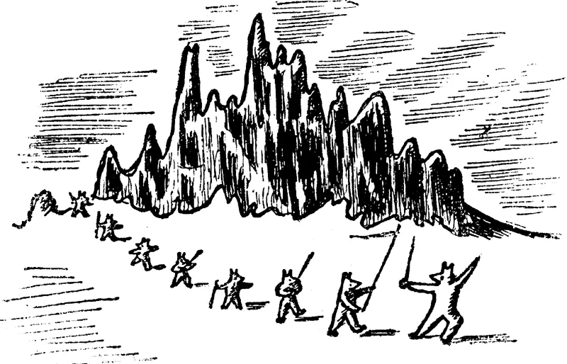 Un «crudelissimo tiran», dunque, così attento alla propria immagine da cambiarsi d’abito più volte al giorno, preso in giro in segreto dal suo popolo e connotato da una fisicità che si affida a pochi tratti caratteristici, quasi caricaturali e indimenticabili, come il gran naso a becco e l’estrema magrezza (e qui vengono in mente i ridicoli baffetti neri divenuti il marchio di fabbrica hitleriano, ma anche il mascellone e la zucca pelata di Mussolini). Ed è una soluzione degna di Hitler quella destinata a placare l’ansia paranoica del Granduca, che invia l’esercito sulle montagne con l’ordine di uccidere «tutti gli esseri viventi incontrati lassù: erano vecchi taglialegna, pastorelli, scoiattoli, ghiri, marmotte, perfino uccelletti innocenti. Si salvarono soltanto gli orsi, nascosti nelle caverne profondissime…». Un rastrellamento tedesco in piena regola, insomma, come quelli che stavano devastando l’Italia di allora.