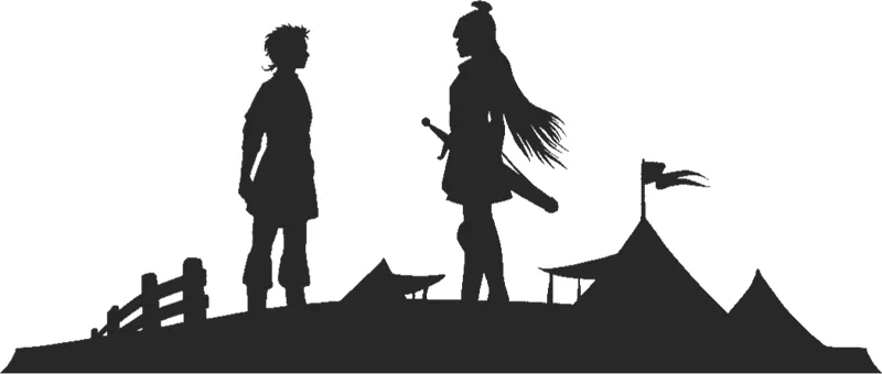 La prima parte del piano andò bene e nessuno lo vide. Ma non appena fu uscito dal campo, Loran si imbatté in una figura in armatura che osservava immobile l’orizzonte.