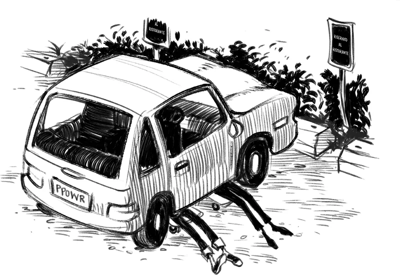 Poi si distesero supini sugli skateboard e scivolarono sotto una cinque porte gialla, che apparteneva al loro preside, il quale rispondeva al nome di preside Barkin, e pranzava Da Danny ogni domenica alla stessa ora.