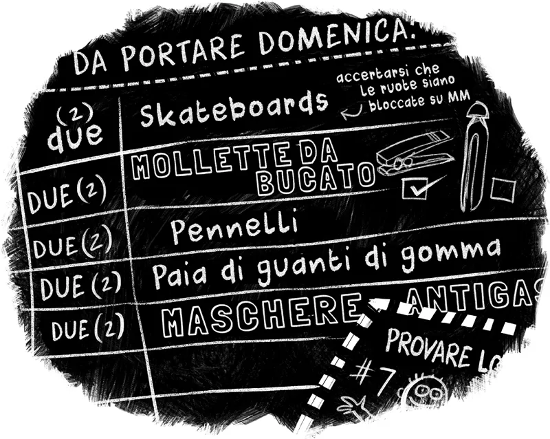 «Perché dovremmo aver bisogno di una maschera antigas?» chiese Niles. Si trovavano nel loro Laboratorio degli Scherzi, una cabina armadio adiacente alla camera da letto di Niles, le cui quattro pareti e il soffitto erano stati dipinti con pittura lavagna, così che i Terribili Due potessero organizzare i loro tiri mancini.