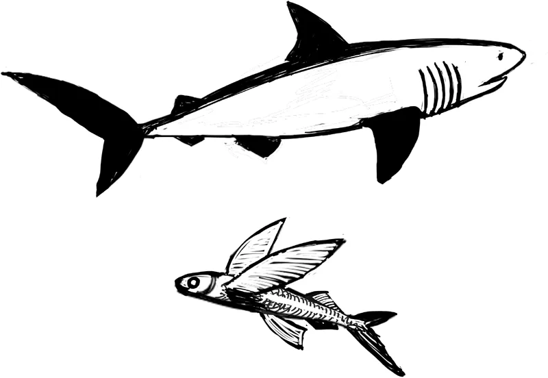 Ho visto un pesce volante oggi e anche Stella. Poi mamma ha avvistato uno squalo in direzione del mascone di sinistra. Uno squalo elefante, pensa. Io ho subito preso il binocolo, ma non sono riuscito a vederlo. Lei ha detto che dovevo annotarlo comunque sul diario e disegnarlo. L’ho cercato su un libro. Sono enormi, ma non mangiano la gente, soltanto pesci e plancton.