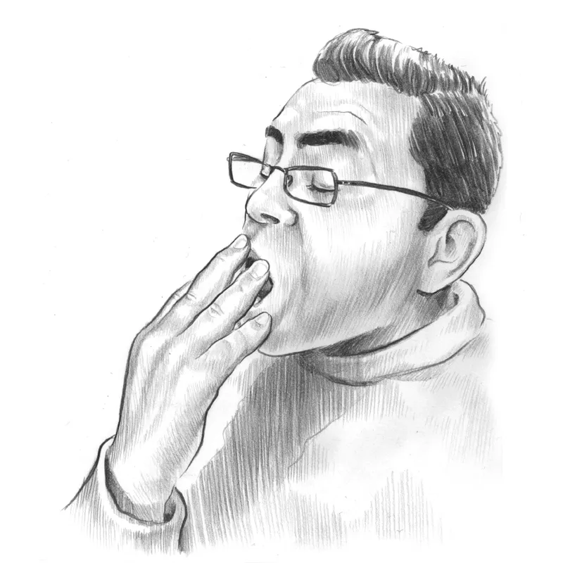 Il vostro interlocutore sbadiglia a più riprese coprendosi la bocca con il dorso di una mano semichiusa.