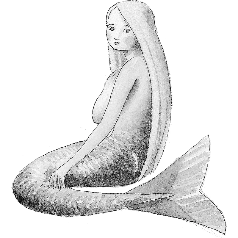 Costei aveva la chioma come un umido vello d’oro, e ogni singolo capello come un filo di oro fino in una tazza di vetro. Il suo corpo era come bianco avorio, e la sua coda era di argento e perla. Argento e perla era la sua coda, con intorno inanellate le verdi alghe del mare; e come conchiglie marine erano le sue orecchie, e le sue labbra erano come corallo marino. Le fredde onde le battevano sui freddi seni, e il sale le luccicava sulle ciglia.