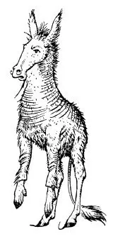 — La tua ora è suonata — lo interruppe Aslan. Rabadash si accorse con orrore che l’uditorio era scoppiato a ridere. Non potevano farci nulla, era più forte di loro, perché mentre Aslan parlava, Rabadash aveva continuato a dimenare le orecchie, ma quando il leone disse: «La tua ora è suonata» gli crebbero a dismisura e diventarono sempre più lunghe, oltre a coprirsi di una peluria grigiastra. Mentre i presenti si chiedevano dove avessero già visto orecchie simili, il viso di Rabadash cambiò: si fece più lungo e con la fronte massiccia, gli occhi sempre più grandi, il naso sembrò essere riassorbito nella faccia (o per meglio dire, la faccia scomparve e si trasformò in un naso enorme), mentre il tutto si copriva di peli. Anche le braccia si allungarono, fino a che le mani toccarono terra: solo che a ben guardarle non erano mani, ma zoccoli. Il principe si reggeva su quattro zampe, gli abiti dissolti nel nulla, circondato dai presenti che ridevano a crepapelle. Come avrebbero potuto fermarsi, se Rabadash era stato trasformato in un asino?