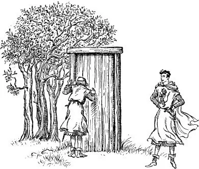 — Dopo tanto frastuono — proseguì Lucy — ci siamo trovati qui e ci siamo chiesti che porta fosse quella, proprio come avete fatto voi. A un certo punto si è aperta (dall’altra parte c’era solo buio pesto) e ne è uscito un uomo grosso con la spada in mano. Da com’era vestito ci siamo subito resi conto che si trattava di un Calormeniano. Si è messo dietro la porta con la spada in pugno, pronto a mozzare la testa a chiunque avesse varcato la soglia. Noi gli siamo andati vicino e gli abbiamo parlato, ma ci siamo accorti che non poteva vederci né sentirci. Molto probabilmente, non era in grado di vedere nemmeno i prati e il cielo azzurro che aveva intorno. Dunque non ci rimaneva che portare pazienza e aspettare. A un certo punto abbiamo sentito scattare la maniglia; prima di sferrare il colpo, l’uomo nascosto ha aspettato di vedere di chi si trattasse. Questo ci ha fatto pensare che avesse ricevuto l’ordine di uccidere qualcuno e risparmiare qualcun altro. Proprio nel momento in cui la porta si è aperta, è comparso da chissà dove Tash in persona. Intanto un grosso gatto è entrato nella stalla: appena ha visto Tash è schizzato via come una furia. Giusto in tempo, perché il beccaccio di Tash stava per afferrarlo. Anche il guerriero ha visto il dio: è impallidito e si è inchinato in adorazione, ma il mostro è scomparso nel nulla. Di nuovo abbiamo aspettato un certo tempo e la porta si è aperta per la terza volta. È entrato un giovane calormeniano, un bellissimo ragazzo dall’aspetto gentile. Quando la sentinella lo ha visto, è rimasta di sasso: evidentemente si aspettava di veder entrare qualcun altro…