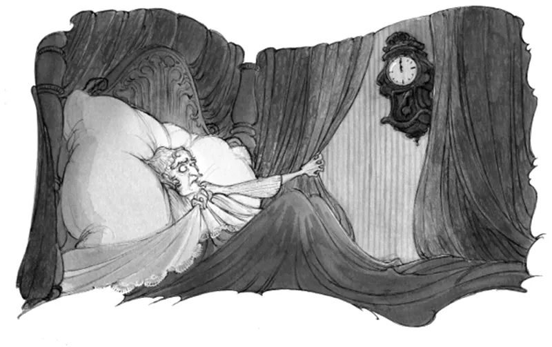 Destandosi nel bel mezzo di un russare prodigiosamente rumoroso e alzandosi a sedere sul letto per mettere un po’ di ordine nelle proprie idee, Scrooge non ebbe bisogno che nessuno gli dicesse che la campana era già sul punto di battere l’una. Sentì di essere stato richiamato alla coscienza nel momento esatto e allo scopo preciso di avere un colloquio col secondo messaggero, inviato a lui per l’intervento di Jacob Marley. Ma, provando una sgradevole sensazione di freddo, quando incominciò a domandare a se stesso quale delle cortine del suo letto sarebbe stata scansata da questo nuovo Spettro, le scansò tutte con le sue stesse mani, e tornando a giacere, diede un’occhiata inquisitrice tutto intorno al letto, perché voleva essere in grado di affrontare lo Spirito nel momento stesso della sua apparizione e non desiderava esser preso di sorpresa e reso nervoso.