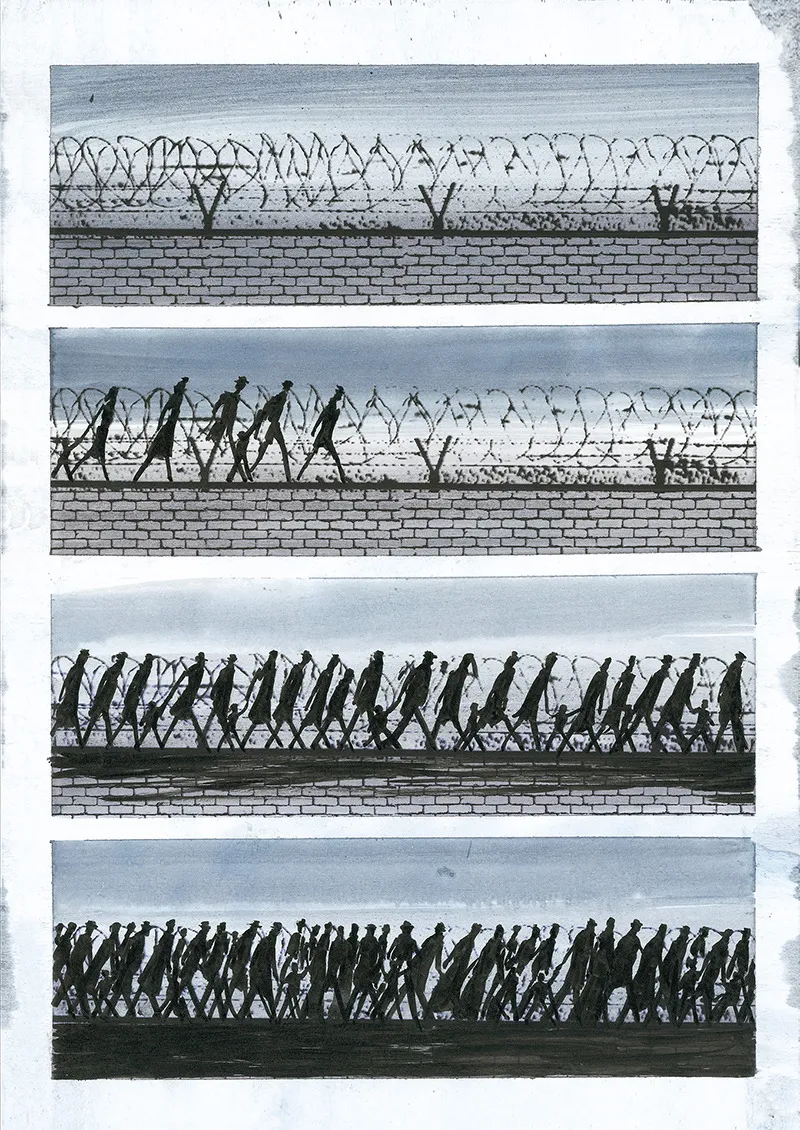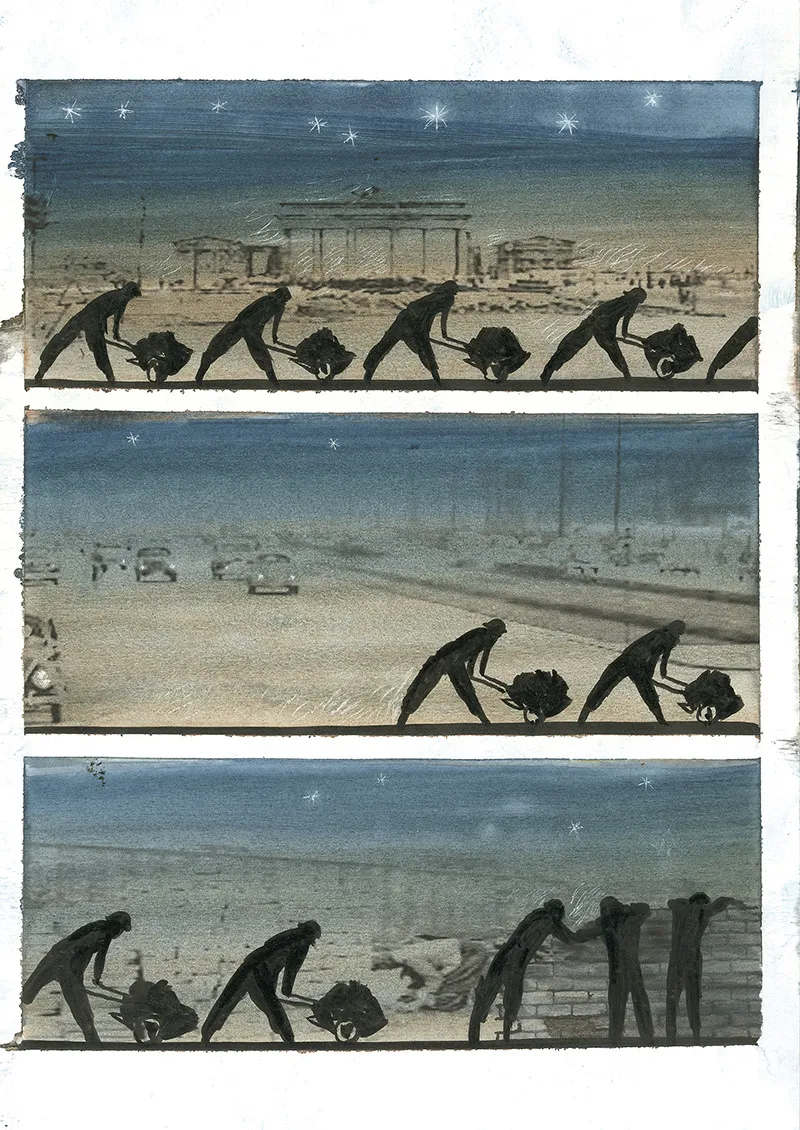 Mentre cominciavano a prendere forma le scene e i luoghi della Grande Guerra, la mia mente chiedeva di vedere al di là delle macerie di un unico conflitto, dentro un solo tempo e un solo spazio. E insieme alla mente sentivo già prevalere le ragioni delle mani per raccontare la storia delle guerre dell’umanità.