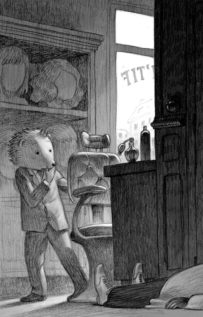 Il giovane porcospino Jefferson Bouchard de La Poterie finì di riordinare la sua casa canticchiando pom… pompom… pompom… come chi è di ottimo umore. Quando tutto fu in perfetto ordine, lo scopino scrollato fuori dalla finestra e la paletta appesa al chiodo, programmò il forno in modo che le patate alla panna fossero cotte a puntino al suo ritorno. Poi indossò la giacca, l’abbottonò al centro notando che si formava qualche piega a causa della sua pancetta sporgente. Avrebbe dovuto frenarsi un po’ con i biscotti.