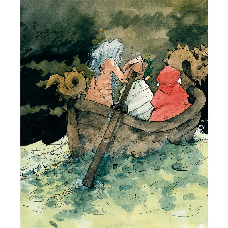 Con un unico remo la guidava un vecchio dagli occhi infuocati e i capelli lunghi, sudici come la barba che cadeva sul petto villoso.