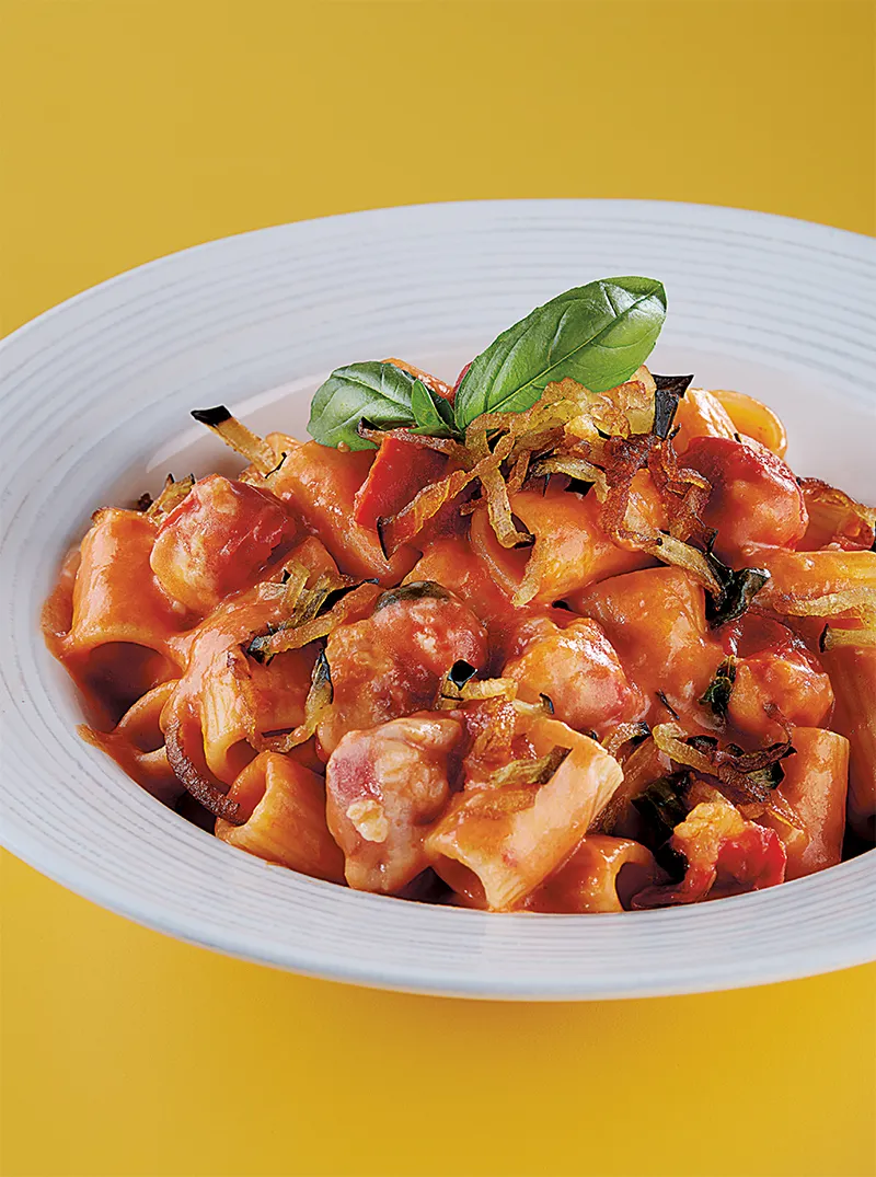 TROFIE AL FORNO CREMOSE ALLO ZAFFERANO CON CARCIOFI E GUANCIALE
