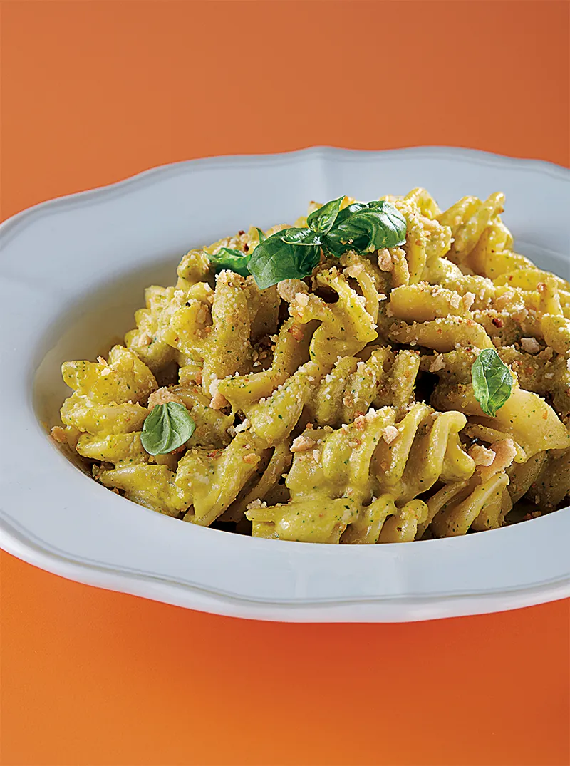 FUSILLONI AL PESTO TRAPANESE CON TARALLI FRITTI