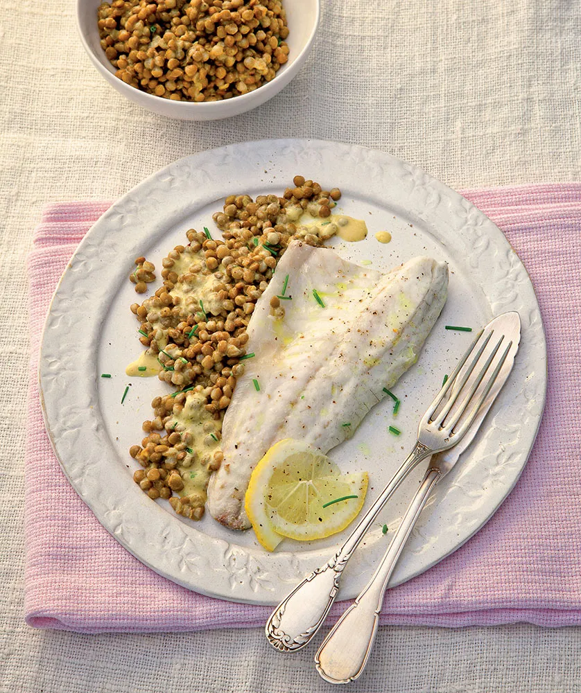 •Sistema le lenticchie accanto al branzino e servi subito.