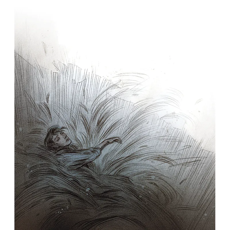 Con il cuore che gli batte forte, disteso fra quel pulviscolo di ferro, riesce a fare appello ai suoi poteri magici. Può sentire la terra, attingervi ancora. Ma quando con la mente raggiunge gli alberi per attirarne i rami a sé, perde il controllo. Il pulviscolo di ferro indebolisce i suoi poteri.