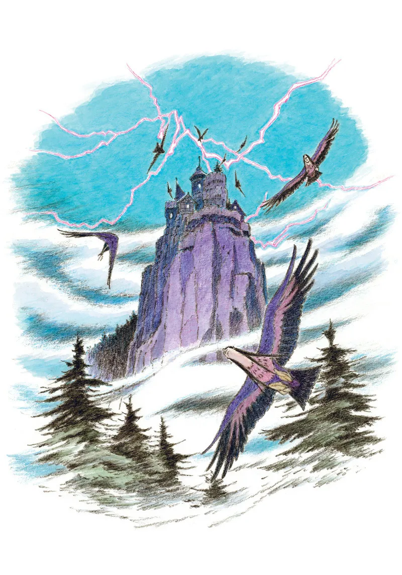 Eh sì, il fulmine aveva toccato terra eccome, e il mattino dopo se ne accorsero. L’antichissima Rocca Mattis in cima al Monte Mattis si era spaccata a metà. Dal colmo del muro di cinta fin giù alla volta più profonda dei sotterranei, era divisa in due parti separate da un baratro.