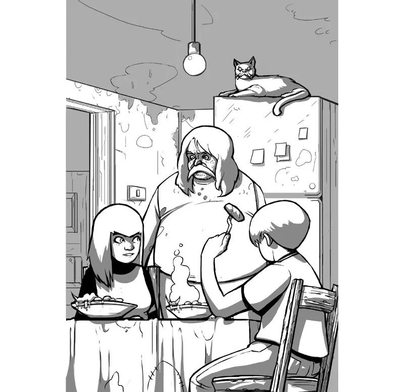 Lo zio prese un pezzo di frittata dal suo piatto e la mise nella ciotola di Celeste, che iniziò subito a mangiarla.