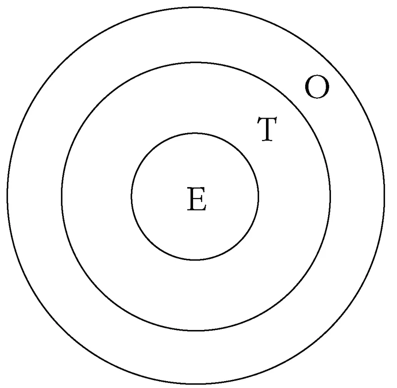 Per sintetizzare la mia prospettiva, si immaginino tre sfere concentriche.