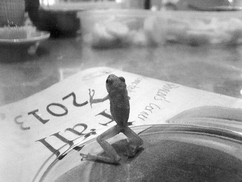 Nel New Hampshire, in realtà, siamo arrivati alla fine dell’estate: impera il caldo continentale, umido, pesante. Andiamo in piscina, teniamo l’ombrellone aperto sulla terrazza di legno in giardino, boccheggiamo in passeggiata, ci facciamo pungere da tafani e vespe benedicendo le robuste zanzariere di metallo che qui sono in tutte le case. Blacky si è schiantato contro quella che dà sul patio, rimbalzando all’indietro, e da adesso in poi si avvicina con cautela a tutte le porte aperte. Meglio non dimenticare di chiuderle: un giorno che mi sveglio presto, con gli occhi ancora assonnati puntati sul computer che riluce nel buio, sento un ploc di chiara origine biologica: sullo schermo è atterrata una micro-rana marroncina, quasi trasparente, che non vuole piú andarsene, e che non so bene come scacciare.