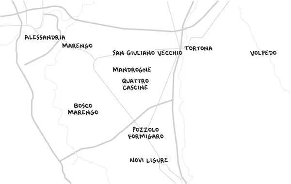Snodo cruciale dei traffici è la località di Novi Ligure, ai tempi «la prima città del ducato genovese sul confine antico del Piemonte». Lí si ritrovavano i mulattieri delle Quattro province che abbiamo incontrato nelle pagine precedenti, diretti al vicino passo della Bocchetta. A Novi il romanzo (ricco di notazioni storiche effettive, dal soggiorno di Napoleone nel convento di Bosco Marengo nel maggio 1796 alla formazione della giunta repubblicana in Alessandria, fino al rientro di Vittorio Emanuele I dall’esilio nel 1814) ci schiude le porte di una romantica Osteria della Luna, che l’autore colloca vicino alla chiesa di Santa Maria della Neve: è nel dormitorio della taverna che trovano ricovero i mulattieri «coricati, quattro o cinque […] che russavano con quel sapore che dà idea di una pienissima felicità».