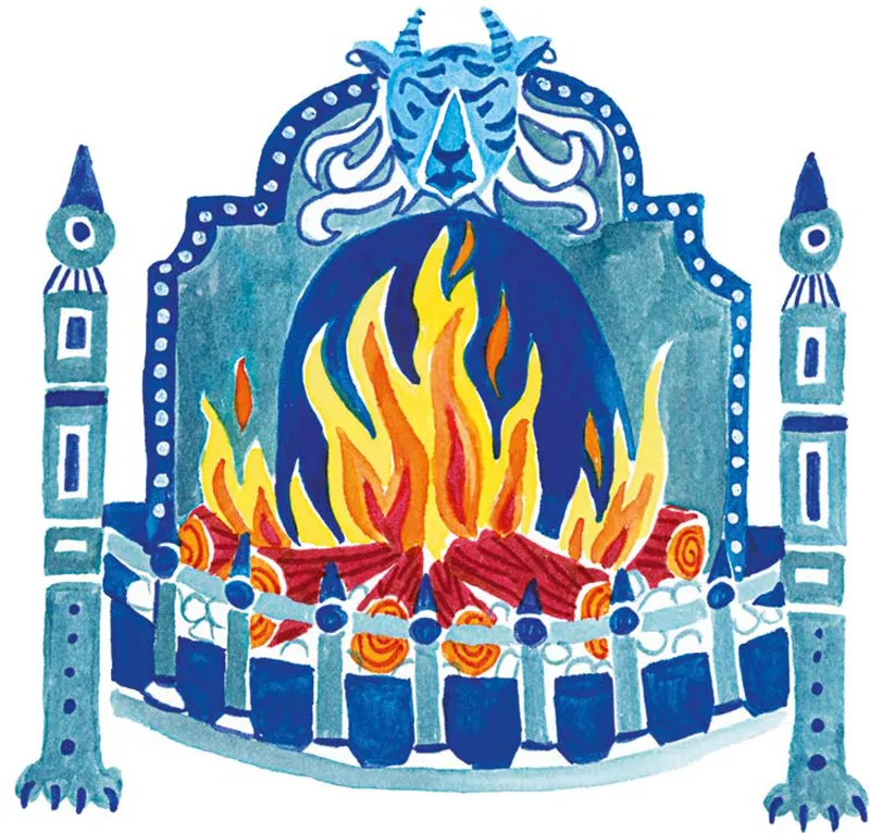 Alla fine riuscì in qualche modo a rimettersi in marcia, e sebbene all’inizio il terreno fosse così aspro e sdrucciolevole da farla cadere più volte, ben presto si fece più agevole e la condusse su una strada alberata che terminava davanti a uno splendido castello. Alla mercante parve molto strano che sul viale non fosse caduto nemmeno un fiocco di neve, anzi, che esso fosse costeggiato in tutta la lunghezza da alberi d’arancio coperti di fiori e di frutti. Quando entrò nel primo cortile del castello vide davanti a lei uno scalone in pietra d’agata e lo salì. Attraversò numerosi saloni sontuosamente ammobiliati. Rinfrancata da quel piacevole tepore, si accorse di avere fame, ma in tutto quel vasto e splendido palazzo pareva non ci fosse nessuno cui potesse chiedere qualcosa da mangiare. Ovunque regnava un profondo silenzio e, alla fine, stanca di vagare per saloni e gallerie vuoti, si fermò in una stanza più piccola delle altre, dove vide un invitante sofà presso un bel fuoco acceso. Pensando che fosse stato preparato per un ospite che stava per giungere, si sedette in attesa del suo arrivo e ben presto cadde in un dolce sonno.