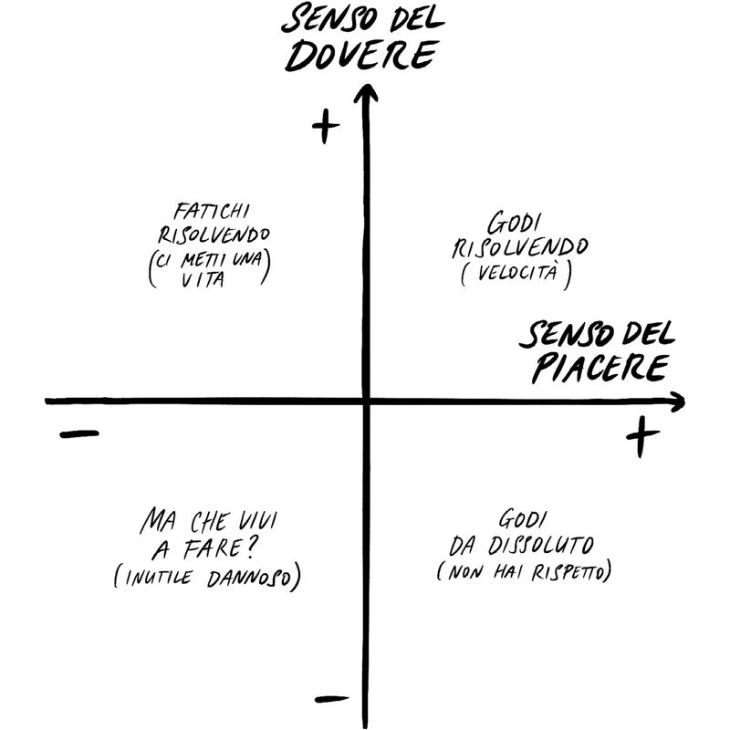 «Se vogliamo modificare definitivamente il nostro atteggiamento di consumo, puntando alla sostenibilità, occorre trasferire il valore del rispetto dal senso del dovere a quello del piacere. Dobbiamo comportarci bene perché ci sentiamo fighi a farlo. Se continuiamo a parlare solo di senso del dovere ci metteremo una vita. Il dovere è vissuto come fatica, dolore, sacrificio. Voglio sentire un ragazzo di vent’anni che dica: “Faccio la differenziata perché poi lo racconto in giro e cucco di più”. Voglio vedere gente che prova invidia per una famiglia che in casa utilizza energia da fonti rinnovabili. Mica rispetto, e neanche ammirazione, invidia! Voglio vedere una bella ragazza che si rifiuta di salire sul suv di Mario, perché preferisce la piccola auto elettrica di Giorgio. E che proprio per questo trova Giorgio molto più figo di Mario. Voglio vedere un tipo che sulla camicia, invece di farsi ricamare le iniziali, ci fa scrivere “Organic cotton Ogm free” e che, mostrandola, ne va fiero. Il rispetto dell’ambiente deve diventare bellezza, basta con il dovere. From duty to beauty.»