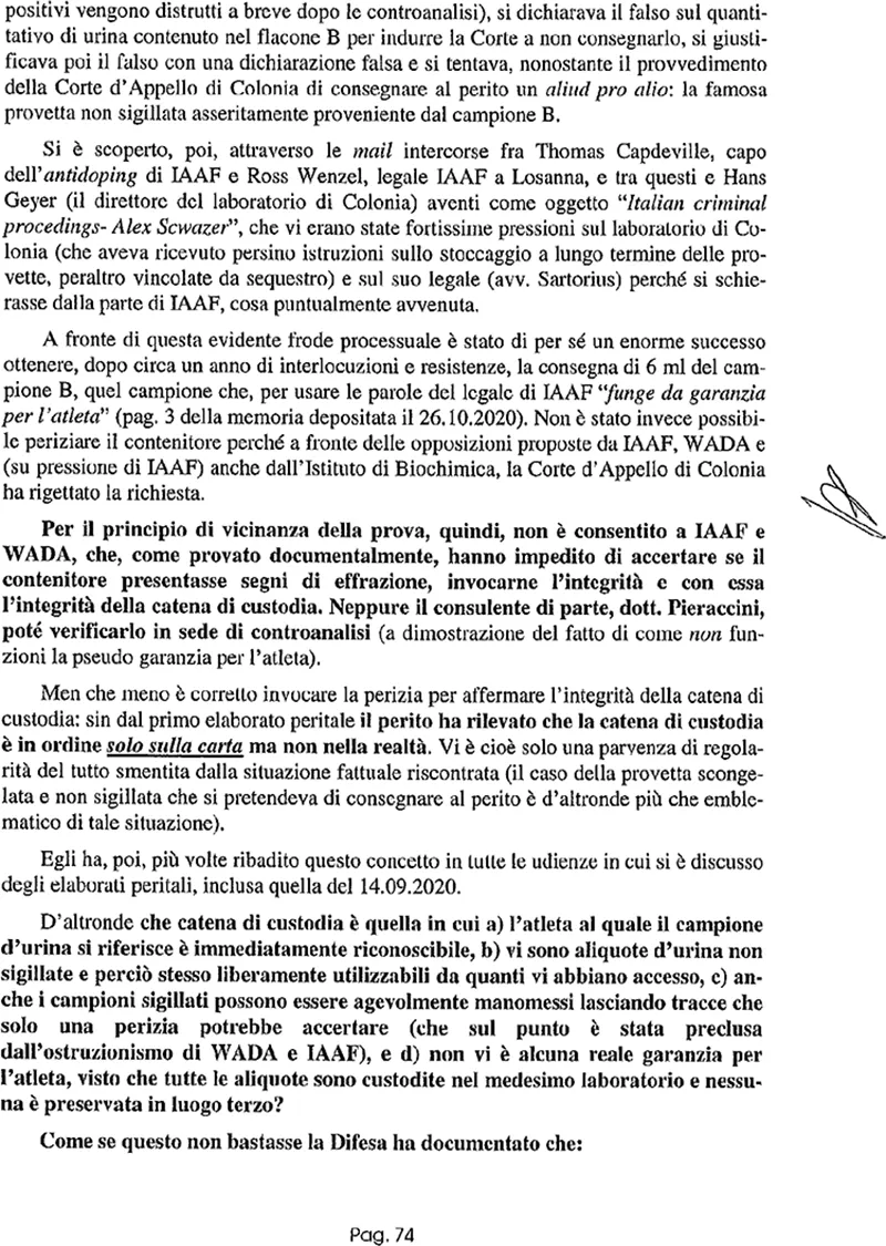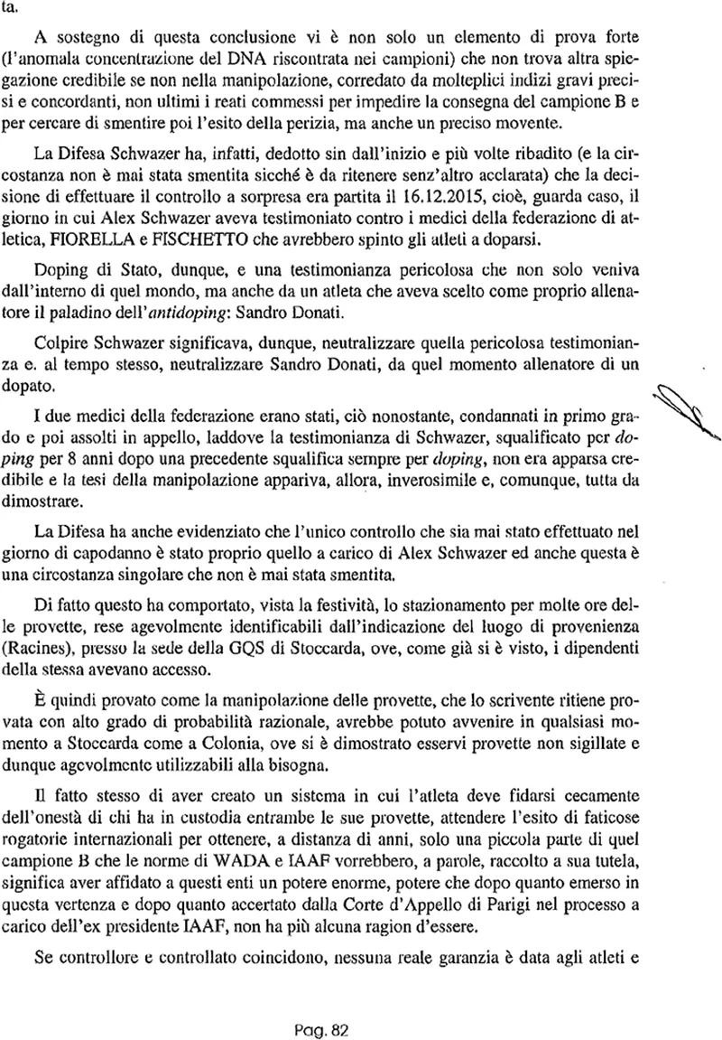 «Buonasera professore, oggi con i giornalisti si è parlato di un mio ritorno alle gare. Vorrei fare una cosa mai vista prima a livello di antidoping. E la prima persona che mi viene in mente è lei». A scrivere questo messaggio, nel novembre 2014, è Alex Schwazer, già Oro olimpico nella 50km di marcia a Pechino 2008 e poi squalificato per doping poco prima di Londra 2012. Il destinatario è Alessandro Donati, uno dei migliori allenatori di atletica al mondo ma, ancor di più, simbolo internazionale (scomodo) della battaglia contro l'uso del doping. Lo stesso Donati che, nel 2012, aveva fatto partire la segnalazione in seguito alla quale Schwazer era stato squalificato. Inizia così quella che dovrebbe essere una storia positiva: un atleta che "si redime" e torna a praticare sport pulito, e un allenatore integerrimo. Ma non siamo in un mondo ideale. Al contrario, profondamente corrotto, dominato da istituzioni - federazioni sportive e organizzazioni nominalmente preposte all'antidoping - marce in tutti i loro gangli. Sono coloro che Donati definisce "i Signori del doping" perché, operando in condizioni di strapotere e immunità, da anni hanno instaurato un sistema di ricatti e corruttela, anziché svolgere il ruolo a cui sarebbero preposti: garantire lo sport pulito. Così, fin dal principio, il percorso di Schwazer e Donati si trasforma nell'incubo e nella persecuzione che vengono ricostruiti con ricchissima documentazione in questo libro che ha un ritmo serrato da spy-story. È la realtà che supera la fantasia: un vile e sporco agguato che fa saltare ad Alex l'Olimpiade di Rio 2016, e poi falsificazione di provette, menzogne su menzogne e un intrigo internazionale che porta fino in Russia per un "giro d'affari" stellare. E, alla fine, l'innocenza di Alex viene riconosciuta dalla giustizia ordinaria - la Procura di Bolzano - ma non dalla "giustizia sportiva"! Ma qual è il senso di tutto ciò? Perché distruggere uno degli atleti più promettenti che l'Italia abbia avuto negli ultimi anni e il suo eccellente allenatore? Lo si scopre leggendo questo libro che affonda il colpo nel sistema sportivo internazionale e, come scrive Attilio Bolzoni nella Prefazione, «è saggio, è narrazione, è atto di accusa ma soprattutto è l'eredità preziosa che ci lascia uno dei grandi personaggi dello Sport contemporaneo. La spaventosa storia di Alex Schwazer, il testamento di Sandro Donati».