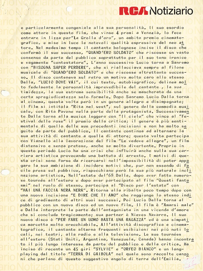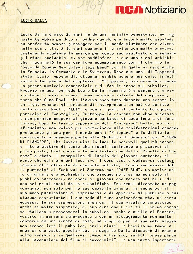 I Fratelli Taviani Lucio Dalla lo avevano scoperto nel 1964, quando avevano girato un divertente episodio per “Carosello” con i Flippers, una pubblicità per le camicie Dinamic. L’elemento che li aveva impressionati maggiormente di quello stravagante quintetto che attraversava Roma a bordo di una macchina d’epoca, abbigliato con giacche a righe e pagliette, era proprio Lucio, che suonava il clarino e cantava.
