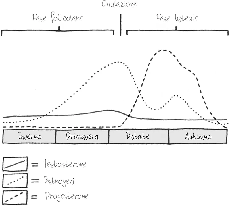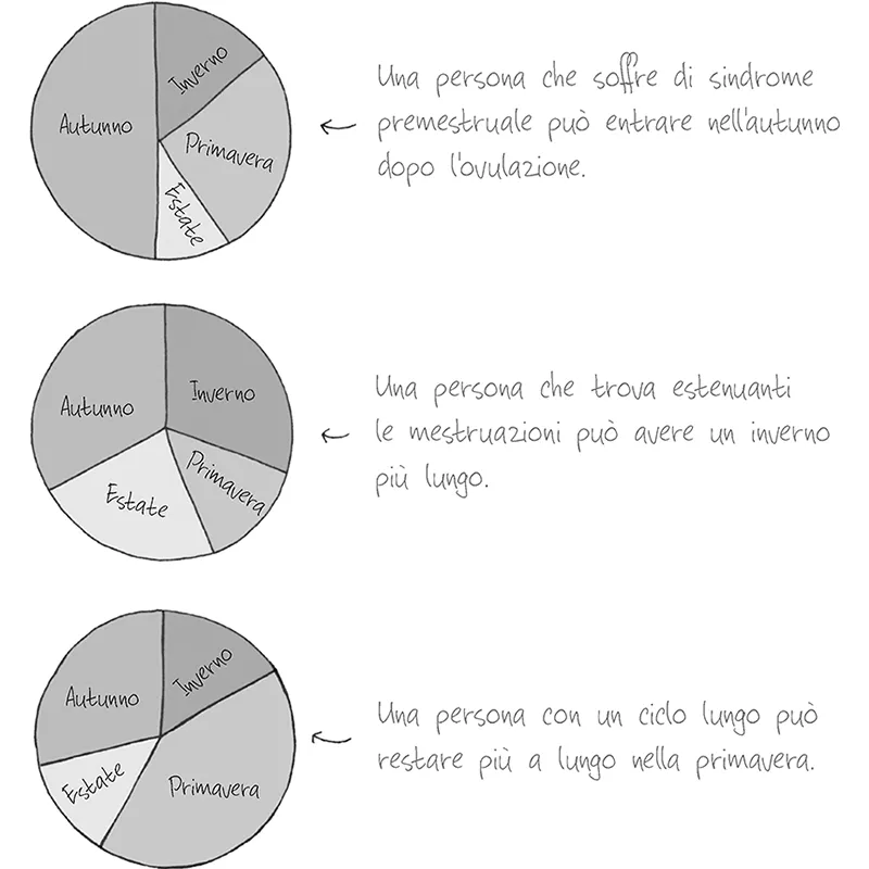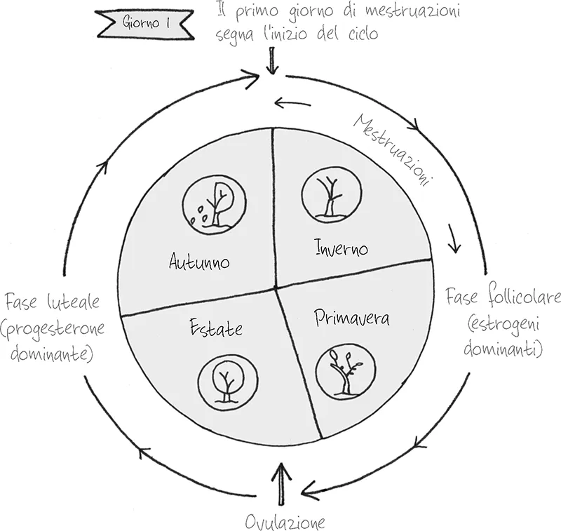 Nei prossimi capitoli ho suddiviso il ciclo mestruale in quattro fasi distinte, ciascuna corrispondente a una stagione dell’anno: