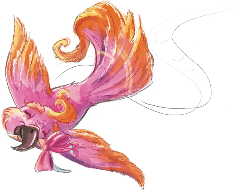 Ma proprio mentre le due amiche stavano per allontanarsi, sulle loro teste planò l’uccello più bello che avessero mai visto. Era un pappagallo con il becco nero e il piumaggio rosa confetto, sembrava fatto di zucchero filato.