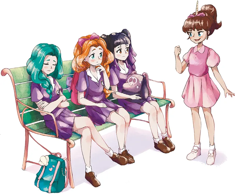 «Si dice così, no? Be’, poco importa! Pensate positivo! Studieremo tanto? Sì! Impareremo tantissimo? Sì! Ci divertiremo tantissimissimo? Assolutamente sì! Dicono che Parigi sia la città più bella del mondo, e noi la renderemo ancora più bella con i colori della Unicorn Squad!»