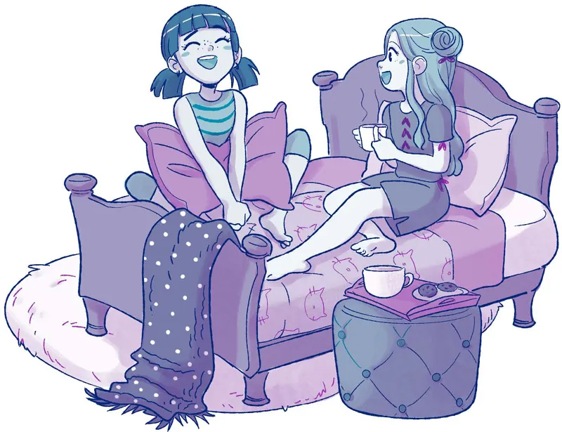 Potevano studiare un piano per convincere i genitori al sabato BFF (che stava per “Best Friends Forever”, “Migliori Amiche per Sempre”), il loro speciale pigiama party mensile. Anche Rala non vedeva l’ora che arrivasse, e di passare un’intera notte con la sua migliore amica.