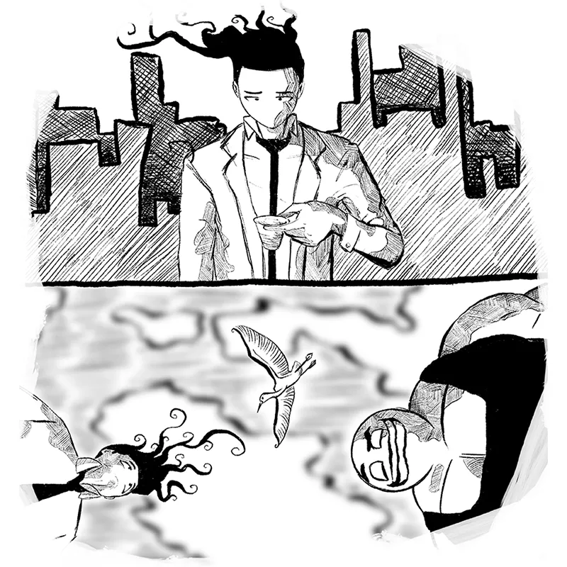 Sono davvero incazzato, il cuore mi batte forte. Il caffè non è la cosa migliore da bere, visto il mio stato di agitazione. Dopo averlo finito, rimango incantato a guardare il bicchierino vuoto. Indovini e oracoli ci hanno costruito una carriera sopra: come sarebbe bello conoscere il mio destino, la risposta a tutti i miei dubbi, scrutando i fondi di caffè! Allora capisco: le macchie di caffè che vedo sono i miei dubbi materializzati.