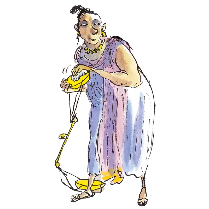 Con l’aiuto di Ayesha, Alì Babà nascose le monete, poi uscì per andare a vendere la legna che aveva raccolto. Ayesha, invece, non trovava pace. Voleva sapere esattamente a quanto ammontasse la loro fortuna. A un tratto ebbe un’idea: non avrebbe fatto in tempo a contare l’oro e a nasconderlo prima del ritorno di Alì Babà, ma poteva sempre pesarlo.