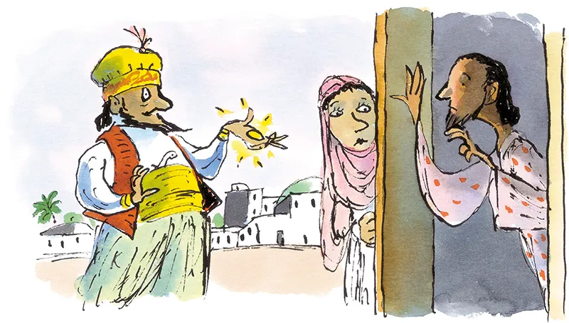 «Oh, non importa» disse Alì Babà, quando rimase solo con Ayesha. «È meglio se usiamo quel denaro invece di tenerlo da parte. Potremmo sistemare la casa, comprare dei nuovi abiti per noi e per Ahmed e prendere una serva che ci aiuti in casa. Nessuno ci farà caso.»