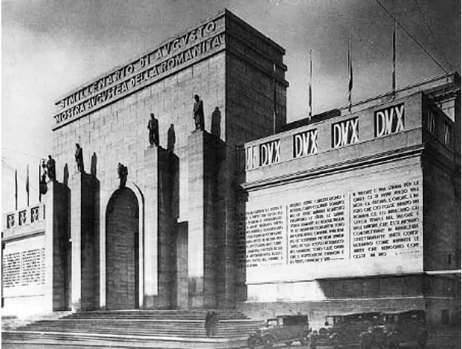 Fig. 1. Roma, Mostra Augustea della Romanità , architettura effimera sulla facciata del Palazzo delle Esposizioni, 1937.