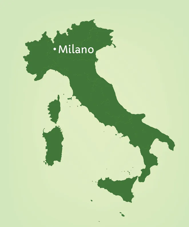 Figura 1.1 Mappa dell’Italia che mostra la posizione di Milano.