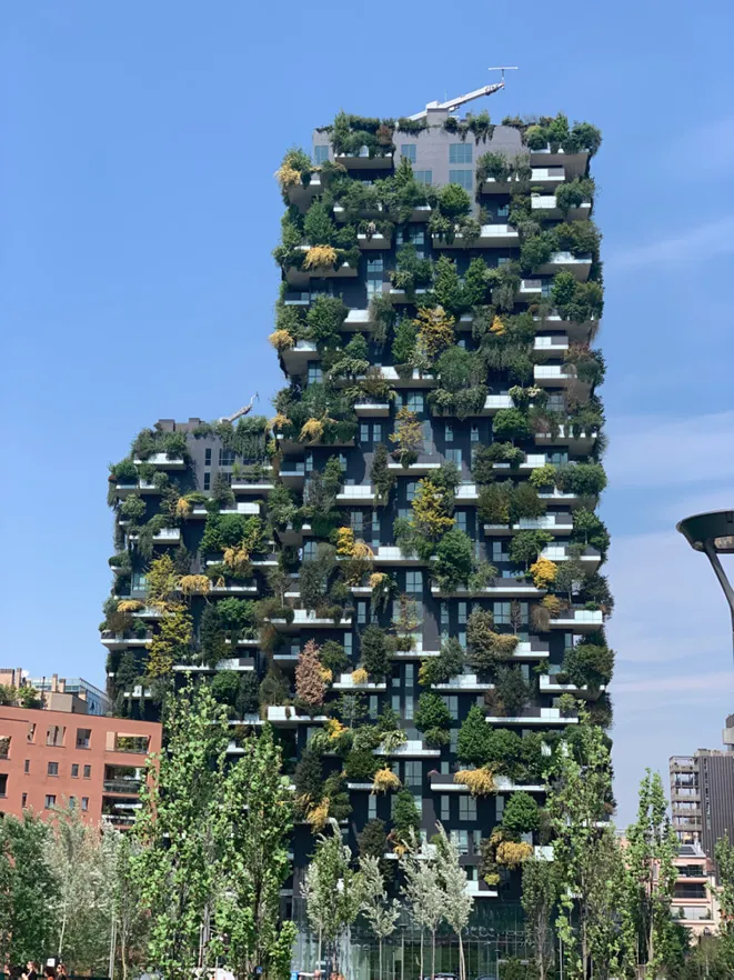 Figura 1.2 Foto del Bosco Verticale a Milano scattata nel 2019. [https://commons.wikimedia.org/wiki/File:Bosco_Verticale_ Milano.webp. CC-BY-SA-4.0]